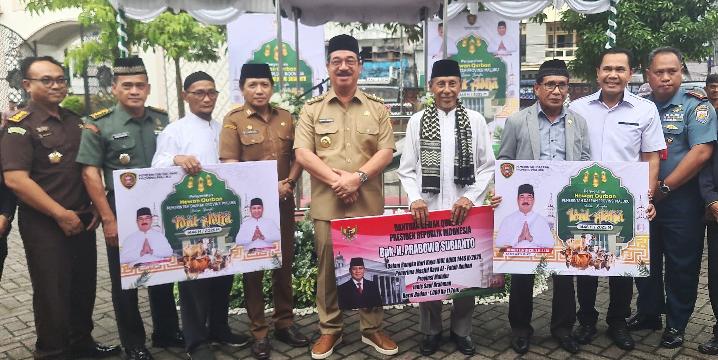 Hewan Qurban tersebut diserahkan secara simbolis oleh Gubernur Maluku Hendrik Lewerissa kepada Imam Masjid Al-Fatah, Perwakilan Yayasan Al-Fatah, dan Pengurus Masjid Jami Kota Ambon