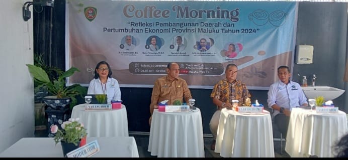 Ambon Ekspose.com,- Dinas Komunikasi dan Informasi Provinsi Maluku menggelar coffe morning bersama insan pers, Pelaksana Harian (PLH) Sekretaris Daerah Maluku Suryadi Sabirin Kepala BPS Provinsi Maluku Maritje Pattiwaellapia, Kepala Kantor Perwakilan Bank Indonesia Provinsi Maluku Rawindra Ardiansyah dan Dekan Fakultas Ekonomi dan Bisnis Universitas Pattimura Ambon Prof. DR. Teddy Christian Leasiwal.